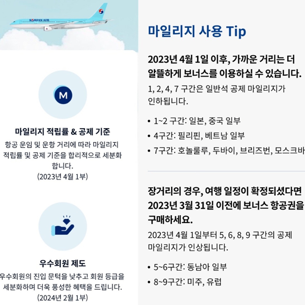 대한항공이 2023년 4월에 마일리지 개편을 한다고합니다.